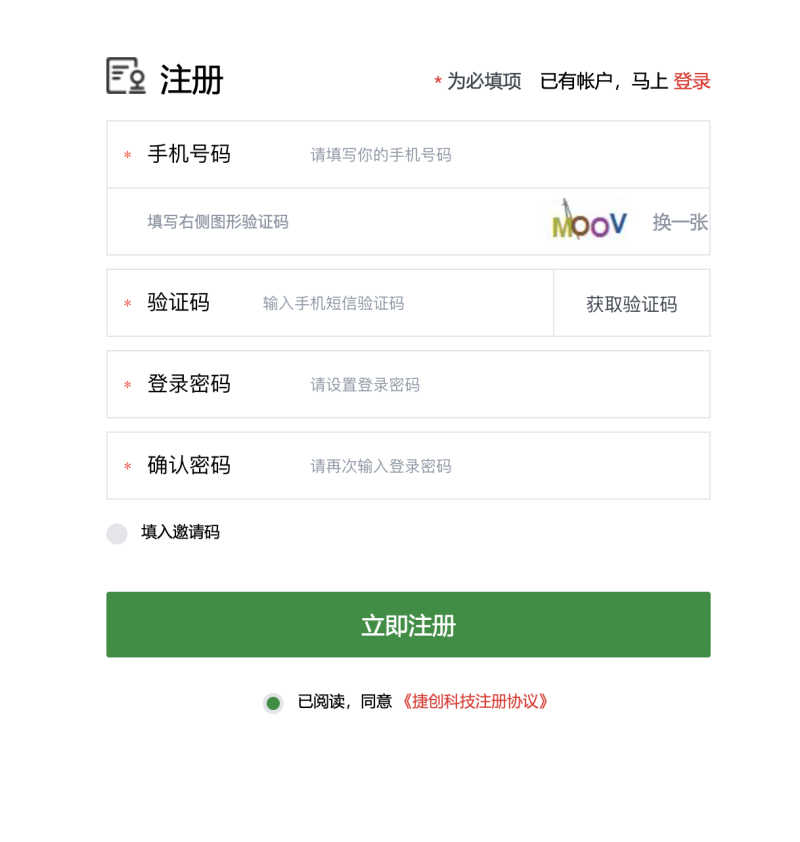 2. 填寫注冊信息,點擊“立即注冊”。為了帳戶安全注冊手機號將進行短信驗證,請您的真實手機號碼及其它信息。