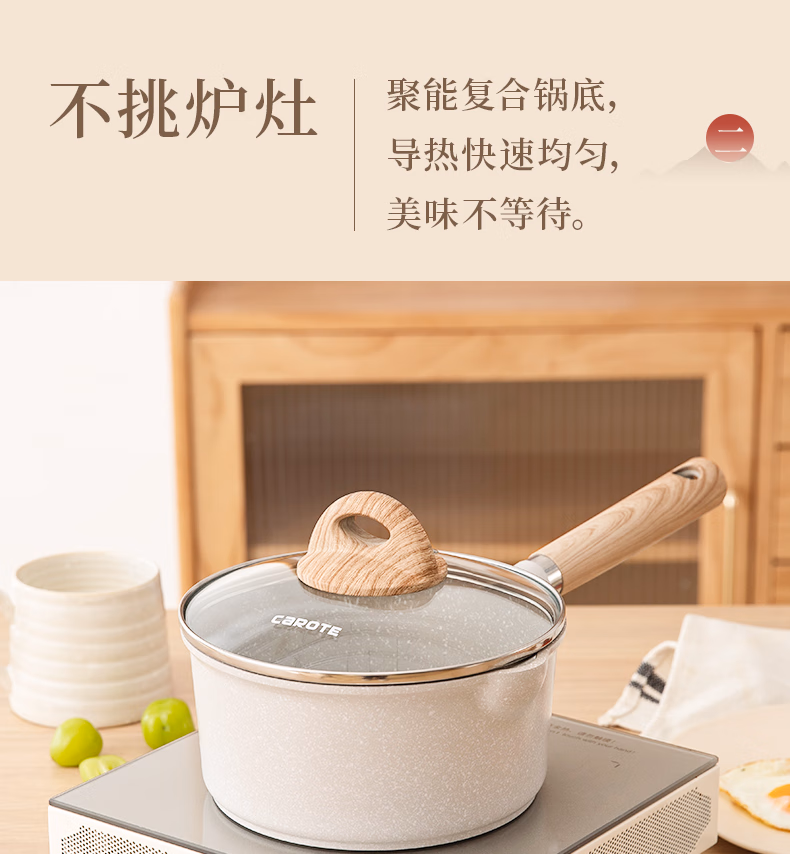 卡羅特麥飯石小奶鍋寶寶輔食鍋嬰兒煎煮一體鍋不粘鈦鍋家用泡面