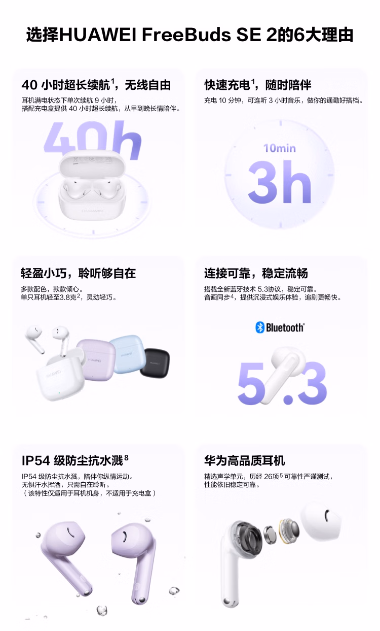 華為長續(xù)航藍(lán)牙耳機(jī) FreeBuds SE 2 國家補(bǔ)貼 40小時(shí)長續(xù)航 快速充電 藍(lán)牙5.3適用于蘋果/安卓手機(jī)白