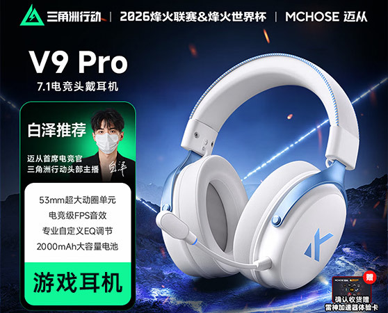 邁從(MCHOSE)V9 Pro游戲耳機(jī)頭戴式電競(jìng)電腦耳機(jī)三角洲行動(dòng)fps吃雞聽(tīng)聲辨位電競(jìng)芯片7.1聲道無(wú)線(xiàn)藍(lán)牙有線(xiàn)
