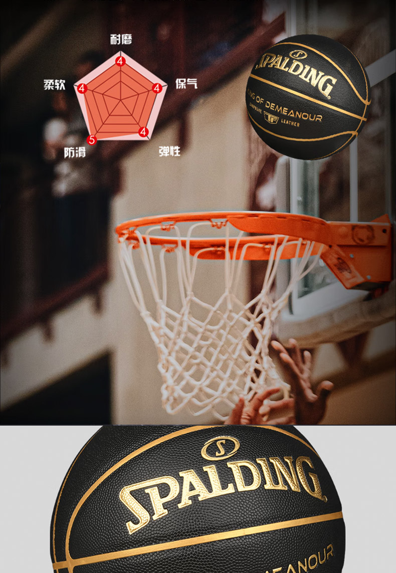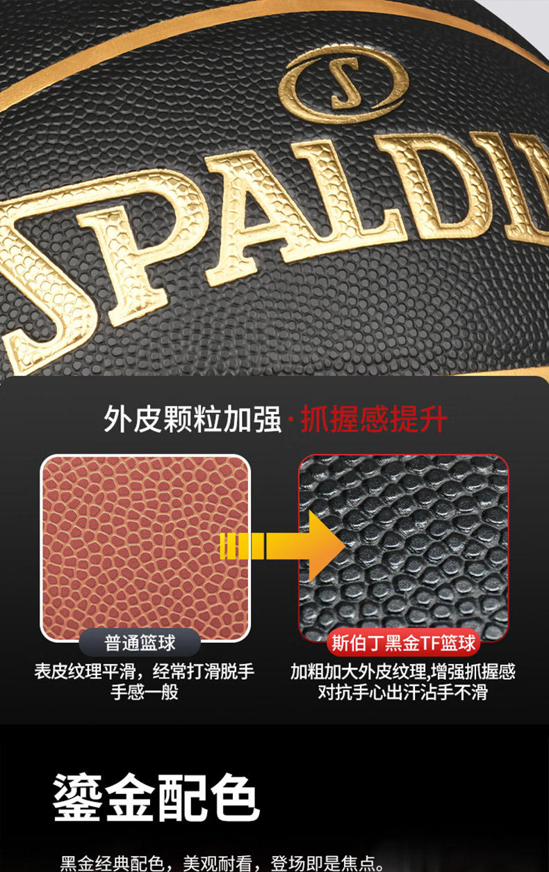 斯伯丁(SPALDING)籃球7號TF黑金掌控系列室內(nèi)外通用防滑耐磨賽事專用七號籃球