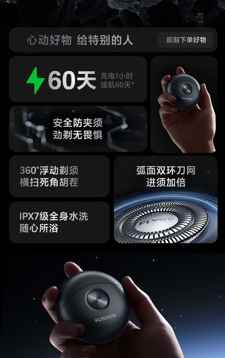 飛科(FLYCO)小飛碟FS891男士電動刮胡剃須刀小巧便攜出行迷你