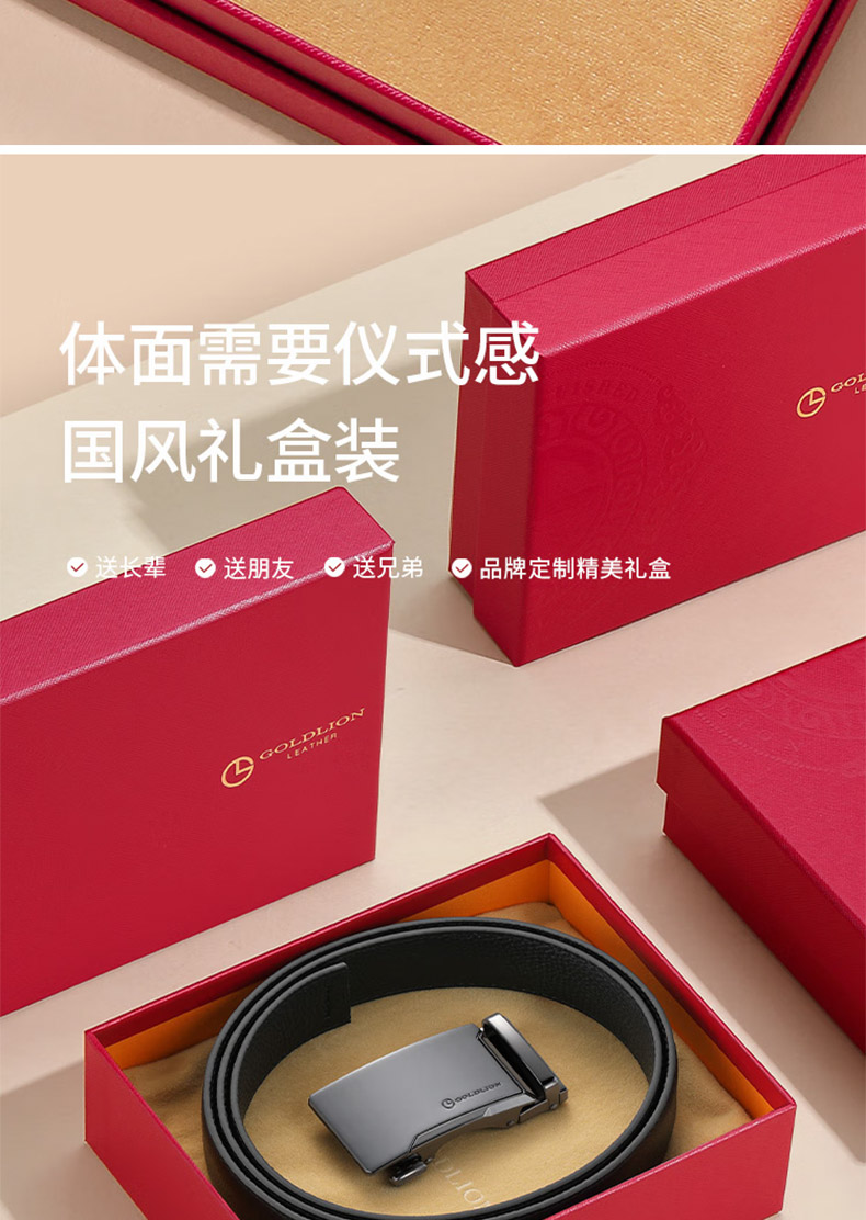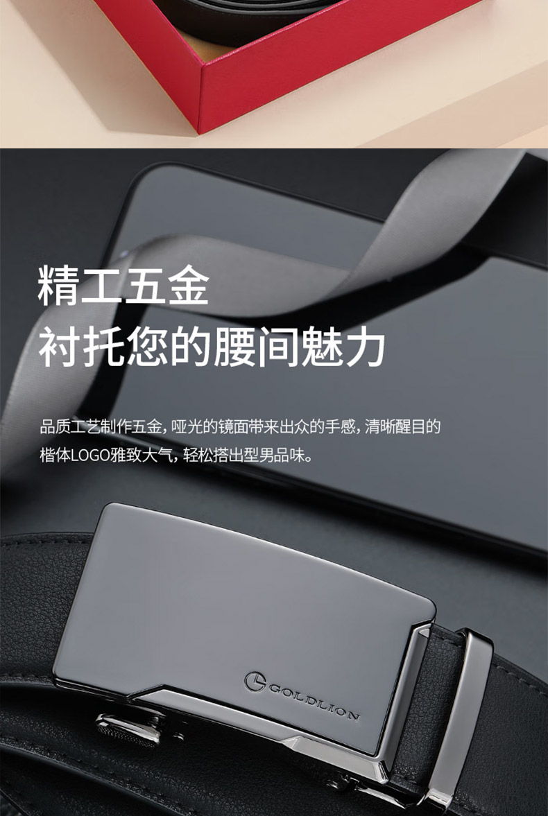 金利來男士皮帶時(shí)尚牛皮腰帶禮盒休閑商務(wù)自動(dòng)扣褲帶