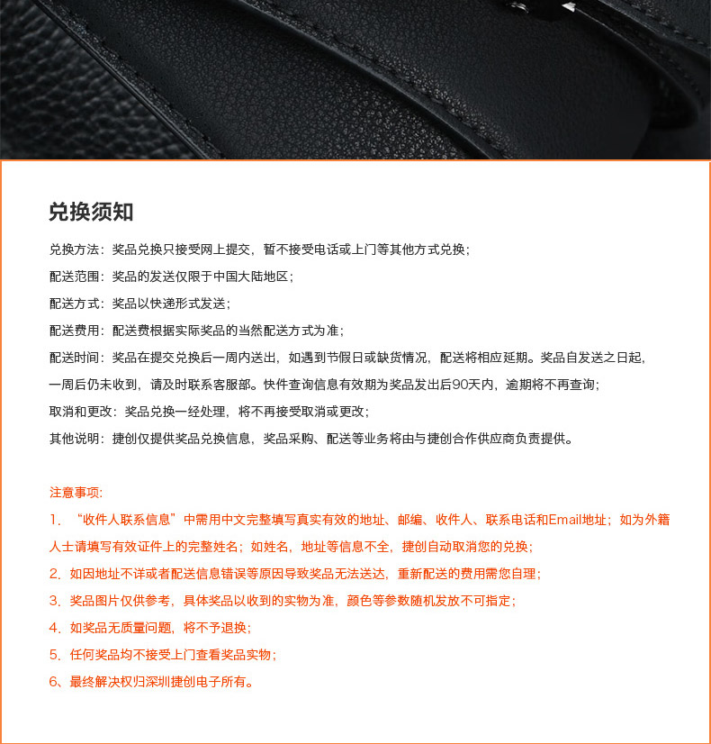 兌換方式:獎(jiǎng)品兌換只接受網(wǎng)上提交,暫不接受電話或上門等其他方式兌換。