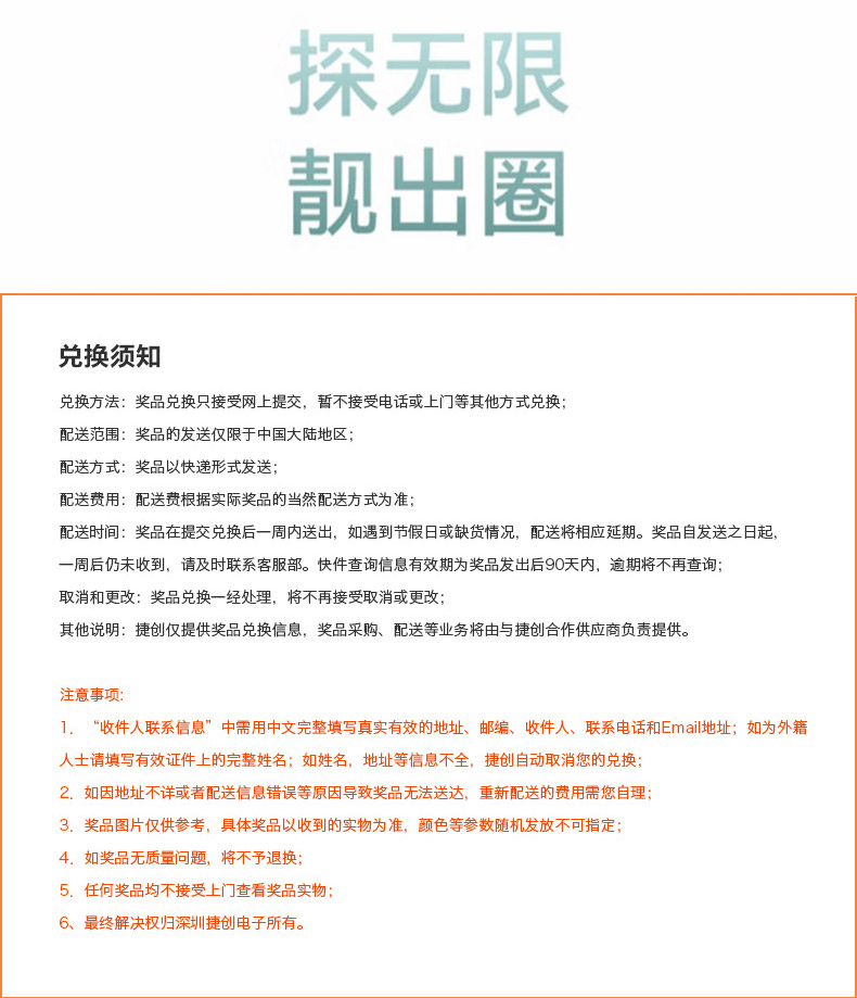 兌換方式:獎品兌換只接受網(wǎng)上提交,暫不接受電話或上門等其他方式兌換。